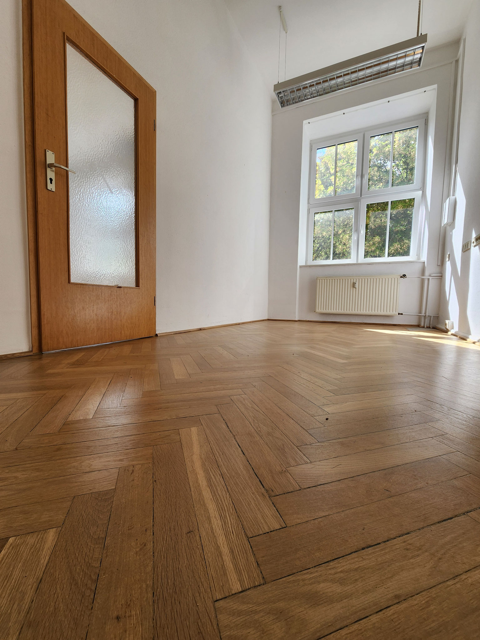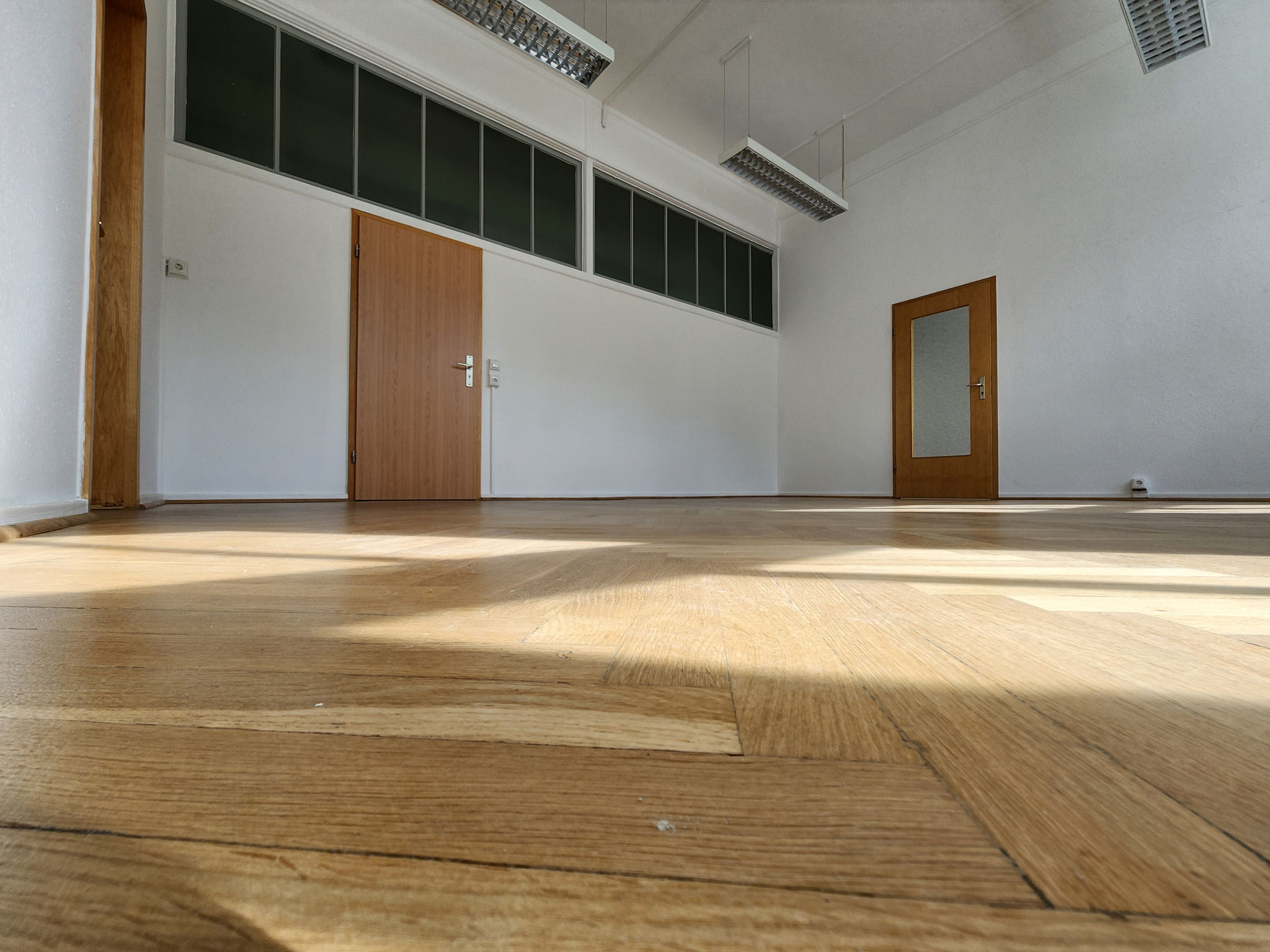 Bei der Renovierung eines Büros zeigte sich zuletzt, dass sich ein Blick unter die Oberfläche lohnen kann: Unter einem in die Jahre gekommenen Teppichboden kam ein gut erhaltener Parkettboden zum Vorschein. Anstatt ihn zu ersetzen, haben wir uns entschieden, ihn aufzuarbeiten und weiterzuverwenden.